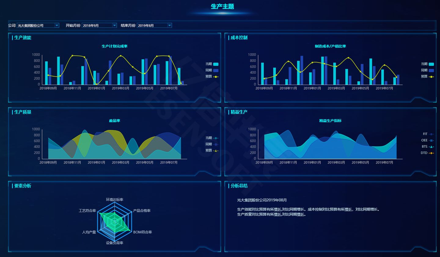 下圖是用億信ABI搭建的生產(chǎn)數(shù)據(jù)分析平臺,都是用于實(shí)際生產(chǎn)的可視化報(bào)表。