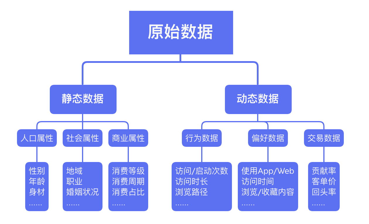 在這一步企業(yè)將得到的數(shù)據(jù)映射到構(gòu)建的標簽中,并將用戶的多種特征組合到一起。標簽的選擇直接影響最終畫像的豐富度與準確度,因而數(shù)據(jù)標簽化時需要與產(chǎn)品自身的功能與特點相結(jié)合。