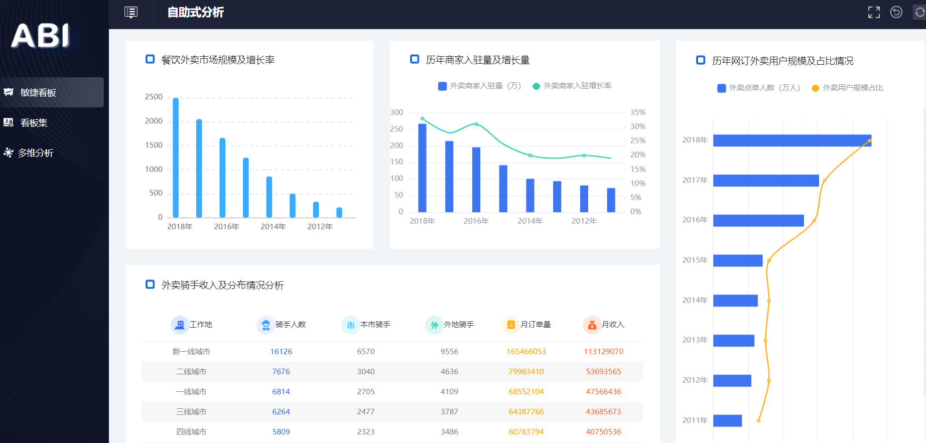 有了數據還要對數據進行分析,恰好億信華辰研發的BI工具億信ABI就能很好的做到這一點。億信ABI打通了從數據接入、到數據建模與處理、再到數據分析與挖掘整個數據應用全鏈路,可滿足企業經營中各類復雜的分析需求,幫助企業實現高效數字化轉型。